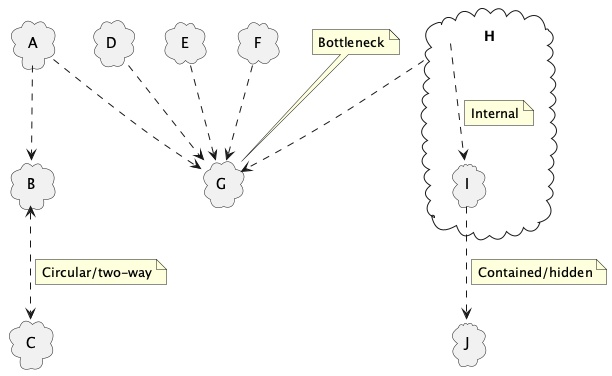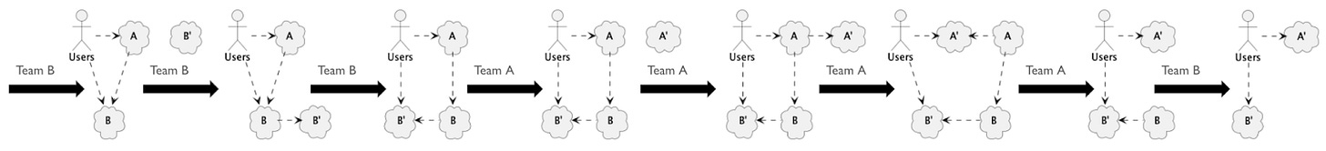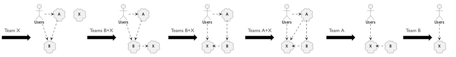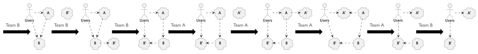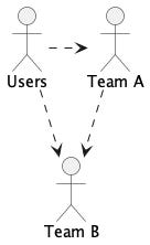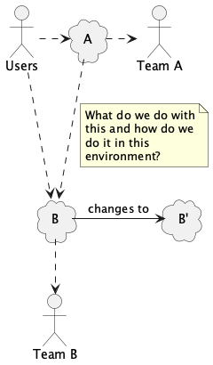 Note that A depending on B implies that Team A depends on Team B and that some users depend on both teams. These are much more difficult dependencies to deal with than the technology dependencies between A and B. If you’re only planning for the technology changes, you’re greatly underestimating the difficulty.