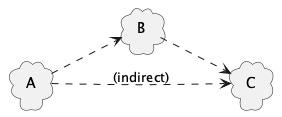 If A depends on B, and B depends on C, then A depends (indirectly) on C (since B stops working if C stops working and A stops working if B stops working).